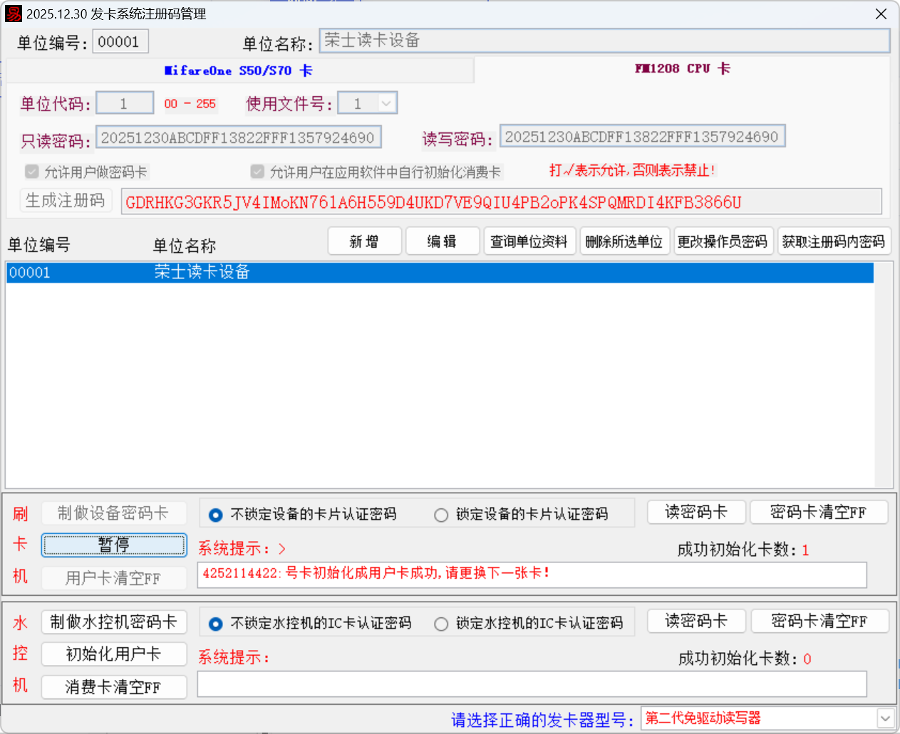 10、专有防复制卡功能,只读取经过初始化加密卡的卡号。