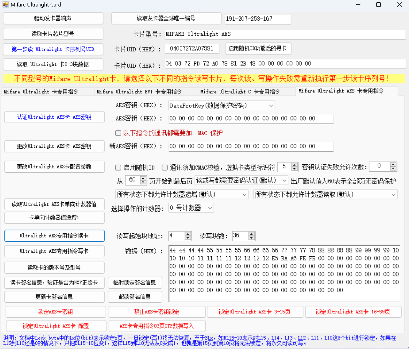 04、Mifare Ultraligth AES卡出厂默认16字节AES密钥:00000000000000000000000000000000;